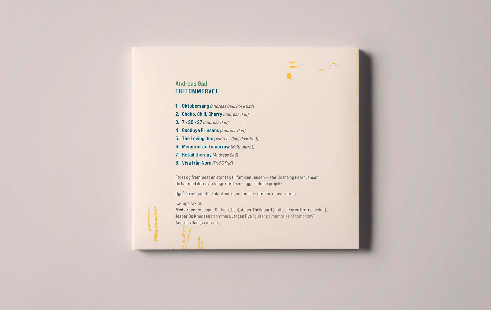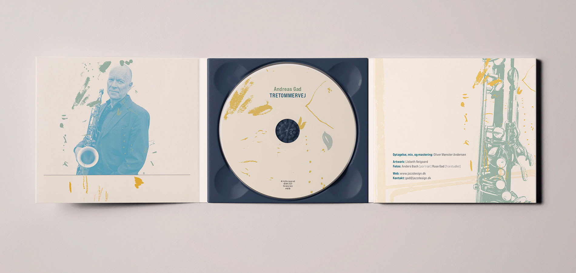 Design af CD-cover til Andreas Gads jazzudgivelse “Tretommervej” 2025, udgivet på Skrams Jazz.