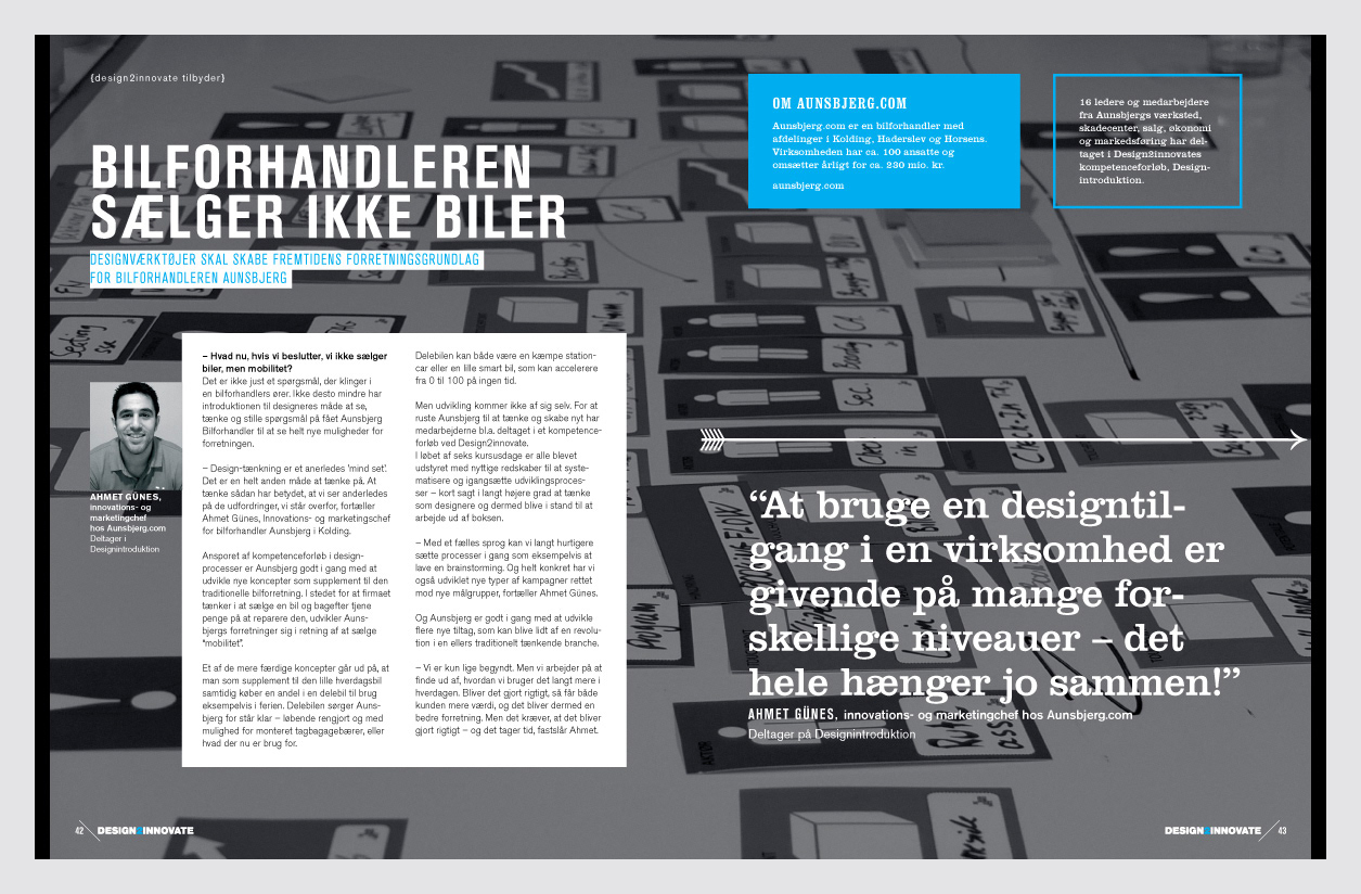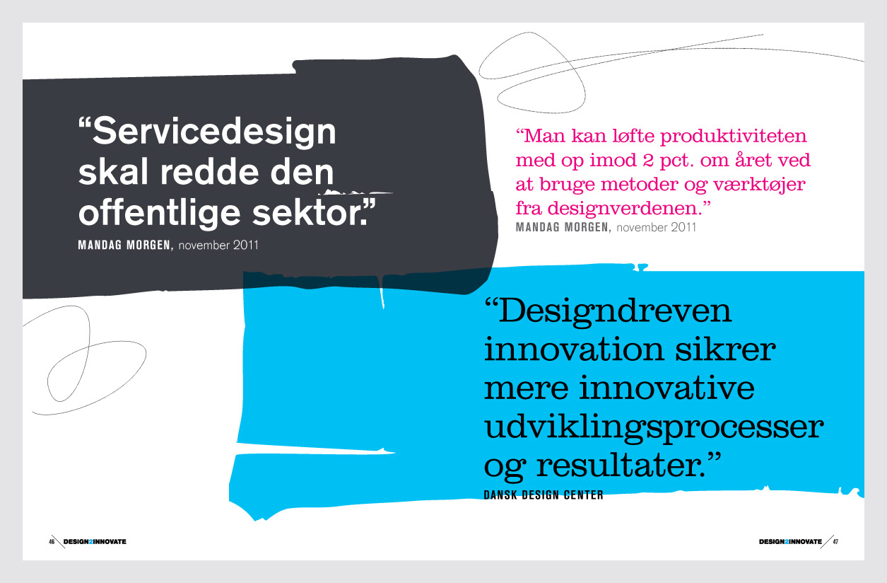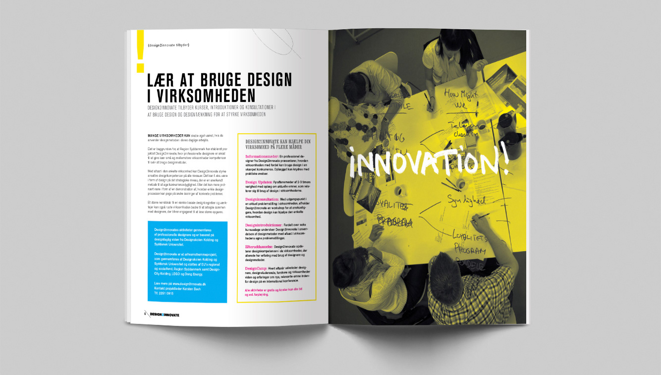 Magazine. 56 pages. Made for Design2innovate, a project who is working for design as a way of thinking and a method which is helpful for other businesses too. Kolding School of Design, 2012.