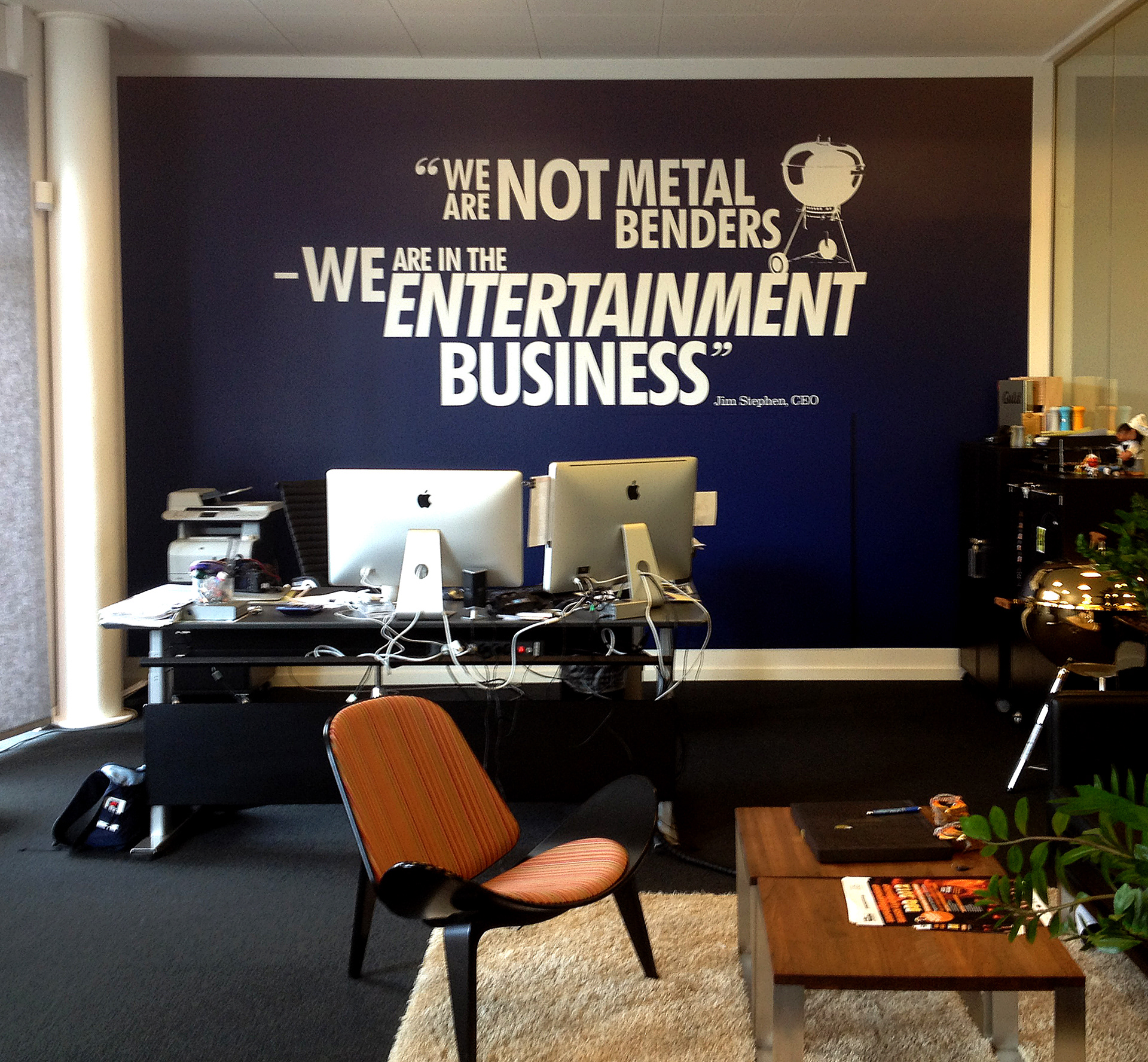 Graphic wall made for Weber's Danish headquarters in Aalborg, Denmark, 2012.